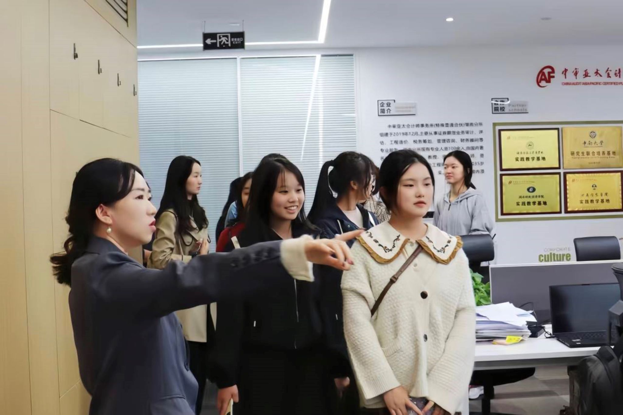 10月20日下午及10月24日上午,公司党委副书记刘杰、会计系主任马巾英、2023级会计一班班导师甘顺利,带领全体2023级会计学专业新生前往中审亚太会计师事务所(特殊普通合伙)湖南分所(以下简称中审亚太湖南分所)进行实践学习。