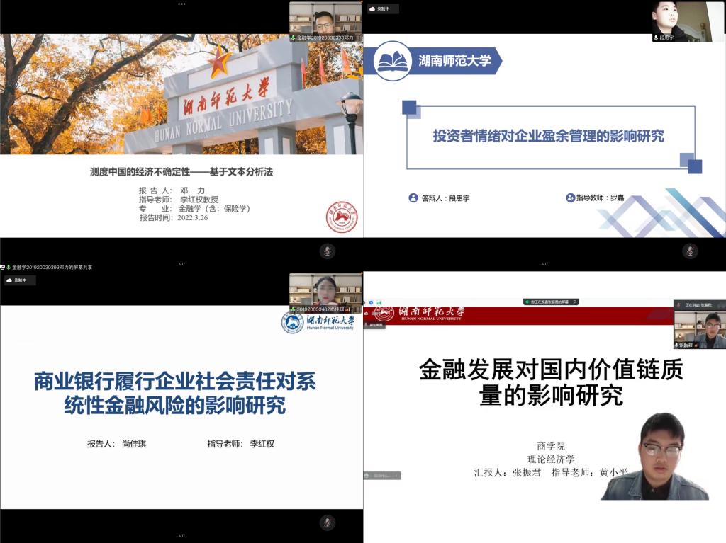 尚佳琪以“商业银行履行企业社会责任对系统性金融风险的影响研究”为主题进行汇报。她从近年来我国经济发展迎来新态势的背景出发,选取2010-2020年沪深上市的35家商业银行,通过python爬取和讯网的企业社会责任数据验证了商业银行履行社会责任与下一期商业银行系统风险之间存在显著的负相关关系;通过中介效应发现,商业银行履行社会责任可以通过降低商业银行破产风险从而降低商业银行的系统性金融风险。最后,她基于研究结论提出政策建议。