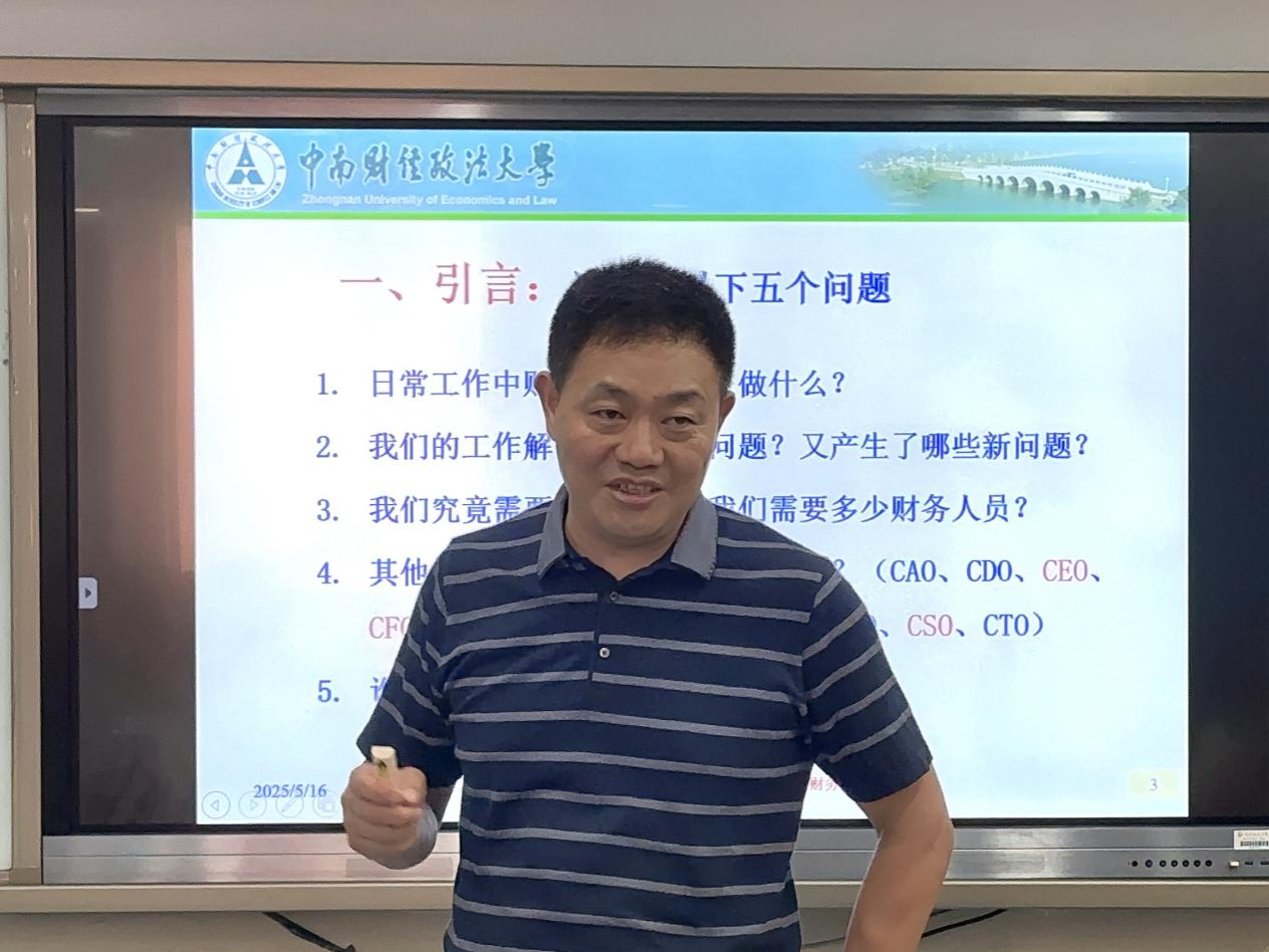 (通讯员 徐苗杰)2025年5月16日,中南财经政法大学张敦力教授莅临公司经管名师讲坛,作题为“财务的未来:无人财务与全人财务的对立统一”的学术讲座。此次讲座由太阳成集团tyc122ccvip何琳洁副教授主持。