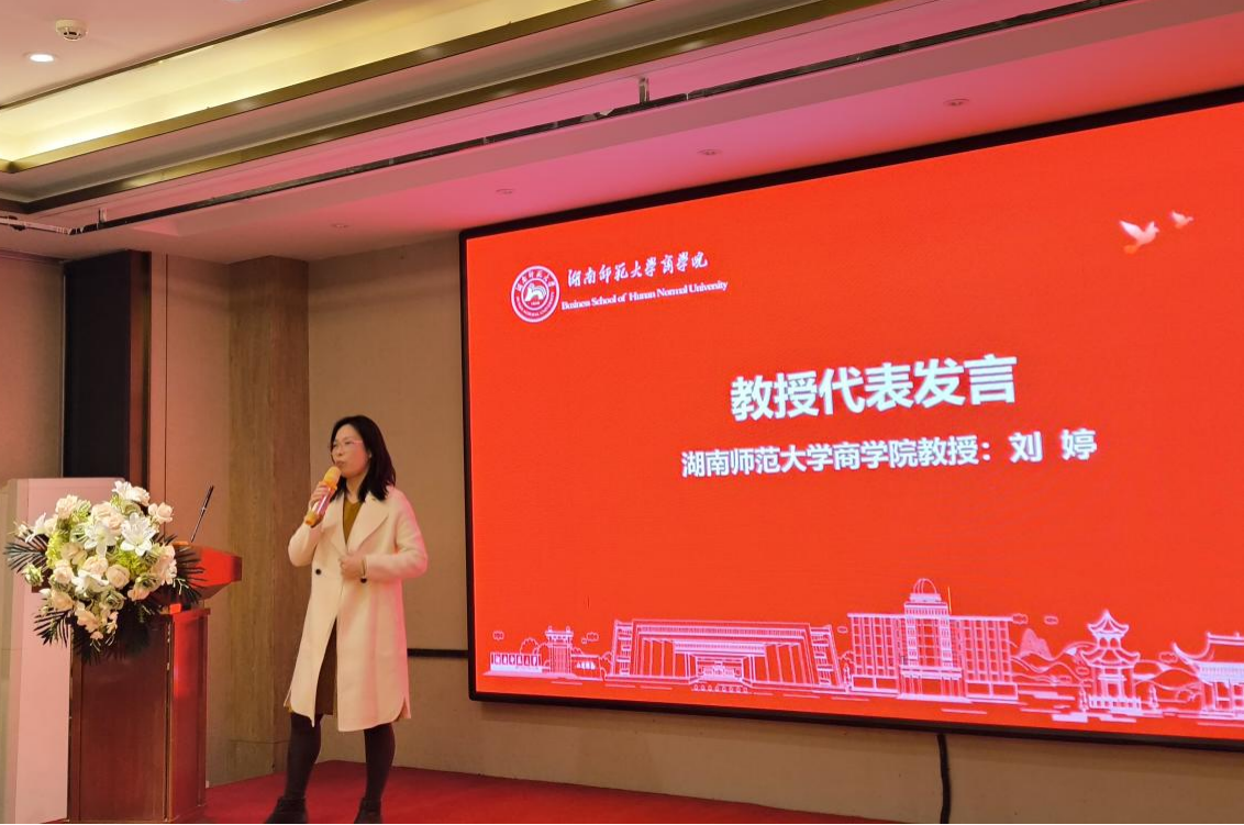 太阳成集团tyc122ccvip刘婷教授、第七届 MBA联合会副主席邓湘庆分别作为MBA学位点学术导师代表和员工代表进行了发言。