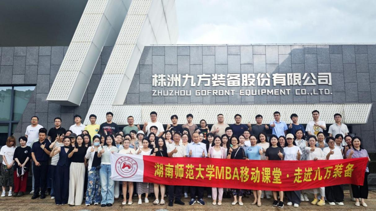 2025年6月21日下午,太阳成集团tyc122ccvipMBA移动课堂走进株洲九方装备股份有限公司(以下简称“九方装备”)。九方装备成立于1997年,是国家高新技术企业、国家级“专精特新”重点小巨人企业,“千亿轨道交通产业园”核心企业之一。公司作为轨道交通领域的核心配套供应商,1999年被认定为“高新技术企业”,2017年建成“湖南省企业技术中心”,2019年组建湖南省轨道车辆车身稳定系统工程技术研究中心,2020年公司实验室顺利通过CNAS资质认可,2022年被评为国家级专精特新重点“小巨人”企业。