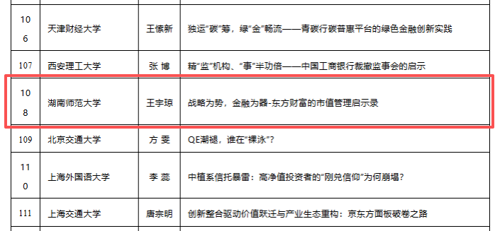 近日,全国金融专业学位研究生教育指导委员会(简称金融教指委)举办的中国金融专业学位案例中心第十一届(2025年)教学案例征集活动结果发布。公司MF中心王宇琼副教授撰写的案例《战略为势,金融为器——东方财富的市值管理启示录》成功入选。