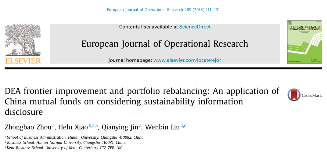 省重点实验室肖和录副教授的论文“DEA frontier improvement and portfolio rebalancing: An application of China mutual funds on considering sustainability information disclosure”发表于国际知名期刊European Journal of Operational Research(2018年,269卷)(ABS 4星)。